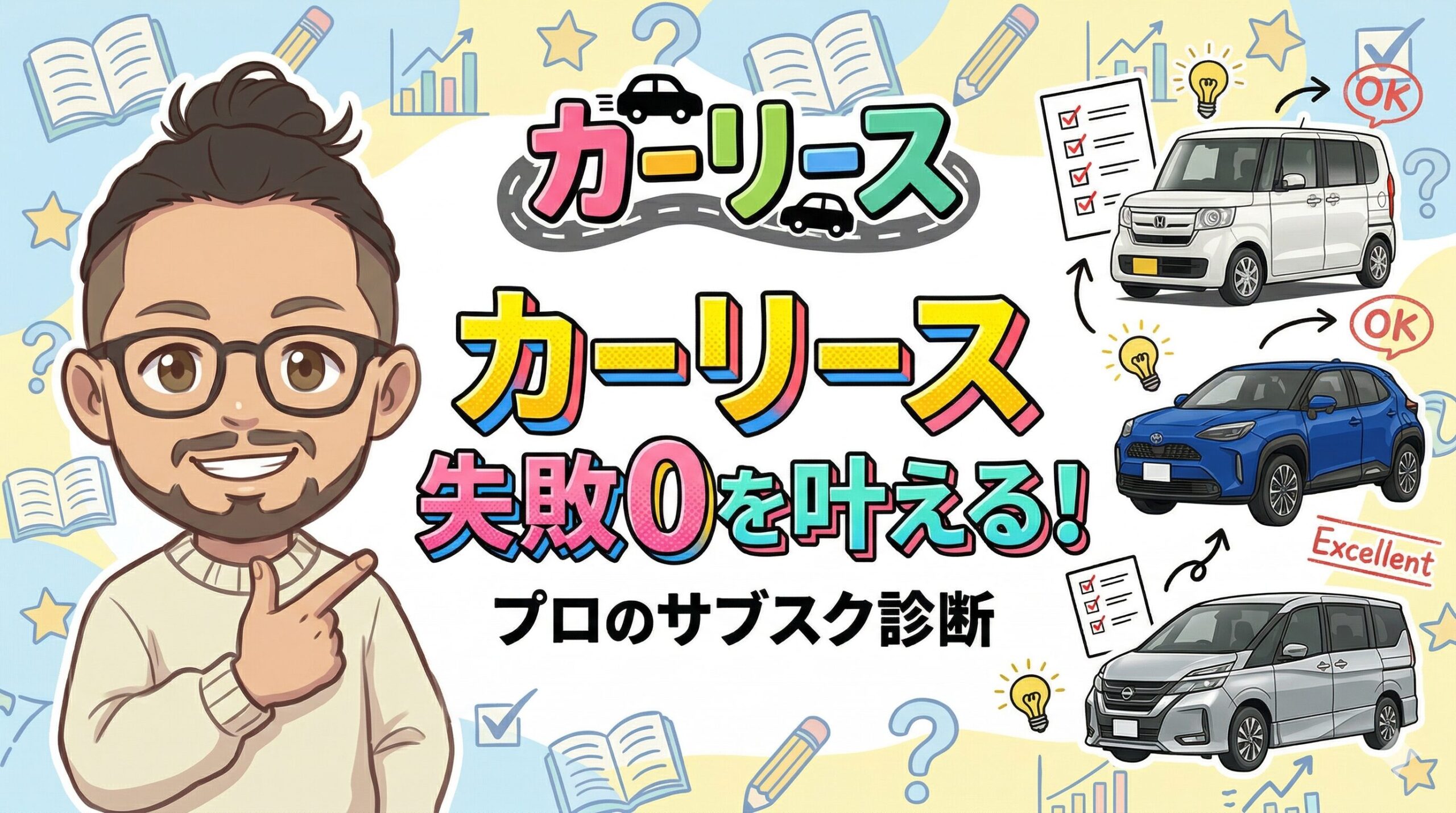 この記事では、カーリースという仕組みの裏に隠された落とし穴をわかりやすく解説し、私の失敗を反面教師にしながら、あなたの数年先の人生計画に最もフィットするサービスを見つけるための「失敗0のサブスク診断」をお届けします!
