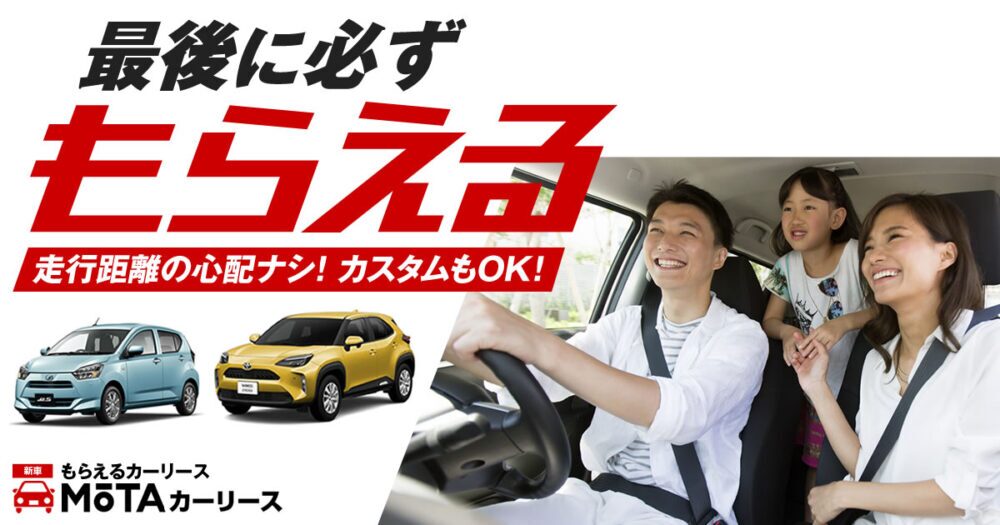 MOTAカーリースは、取り扱っているすべての車種が最初から「残価設定なし」となっており、契約満了後に追加費用なしで車がもらえるのが最大の特徴です。