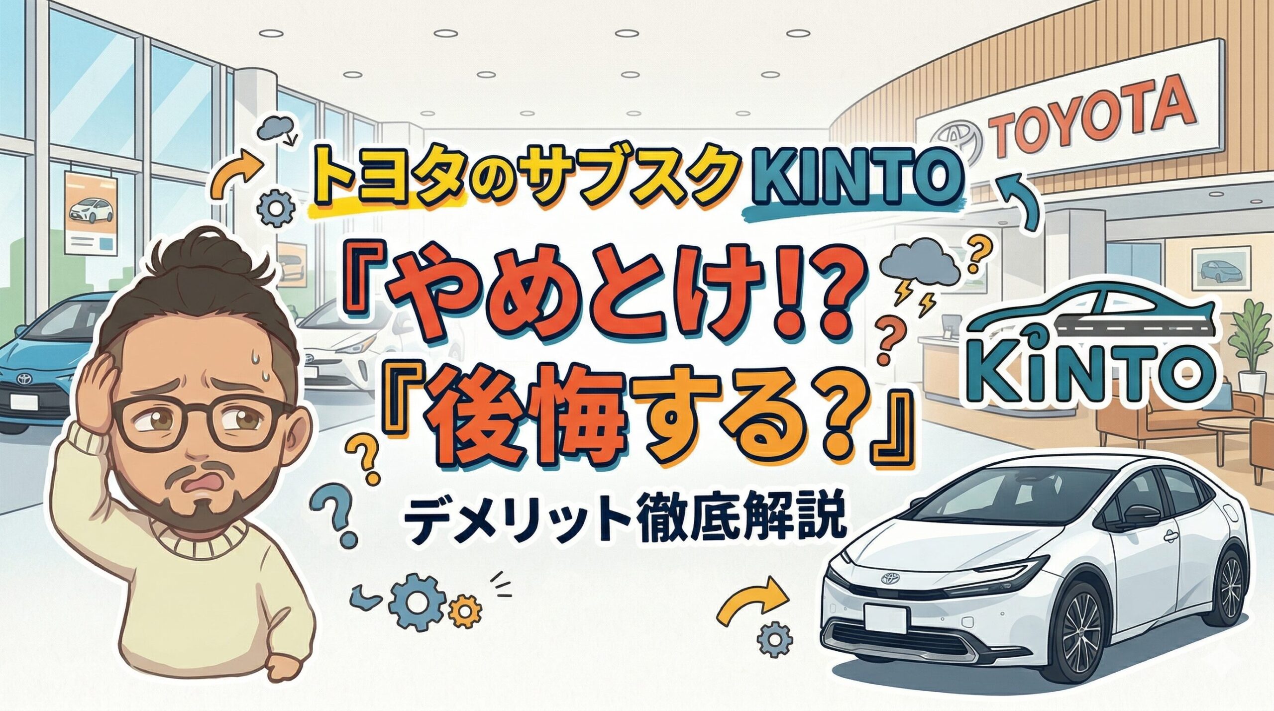 CATEGORY 先輩の失敗談と審査の裏側(KINTO・コラム) KINTO高すぎるは本当?現金一括・ローン・他社リースとの比較シミュレーション 2026.03.28 先輩の失敗談と審査の裏側(KINTO・コラム) ikehito01 カリゼロ0 【破産レベル?】KINTO初期費用フリープラン「途中解約の違約金」シミュレーションの罠 2026.03.27 先輩の失敗談と審査の裏側(KINTO・コラム) ikehito01 カリゼロ0 【詳細解説】優良ドライバーが搾取されるKINTO「任意保険と等級の罠」 2026.03.27 先輩の失敗談と審査の裏側(KINTO・コラム) ikehito01 カリゼロ0 【私の失敗談】KINTOはやめとけ!契約して後悔したデメリットを経験者が暴露 2026.03.27 先輩の失敗談と審査の裏側(KINTO・コラム) ikehito01 カリゼロ0