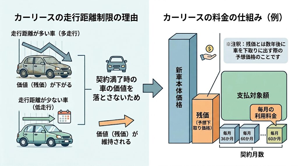 KINTOをはじめとするカーリースの走行距離制限は、残価を維持して月額料金を安く提供するための合理的な仕組みです。